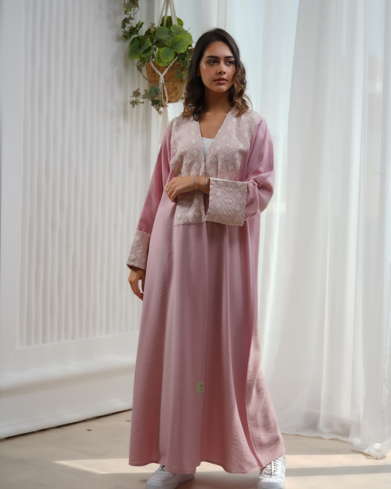 الوصف : حرصنا علي اضافه اللون الوردي الانثوي لمجموعتنا وبالاضافه االي روعة هذا اللون اضفنا قطعه مميزه من التطريز اليدوي الهندي المميز ليظهر انوثتك بشكل مختلف