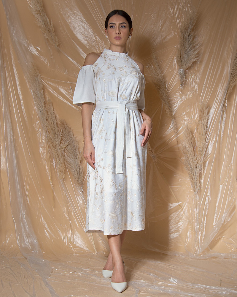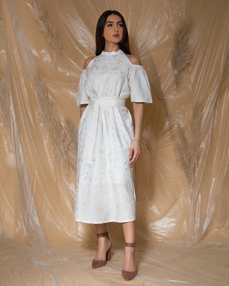 [ مصنوعه من الكريب الفاخر مطرز بخيوط ذهبيه ]