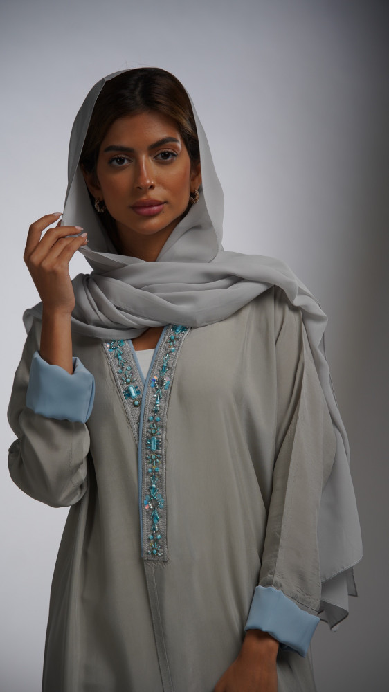 نوع قماش الطرحة : ليزر رمادي فاتح ساده